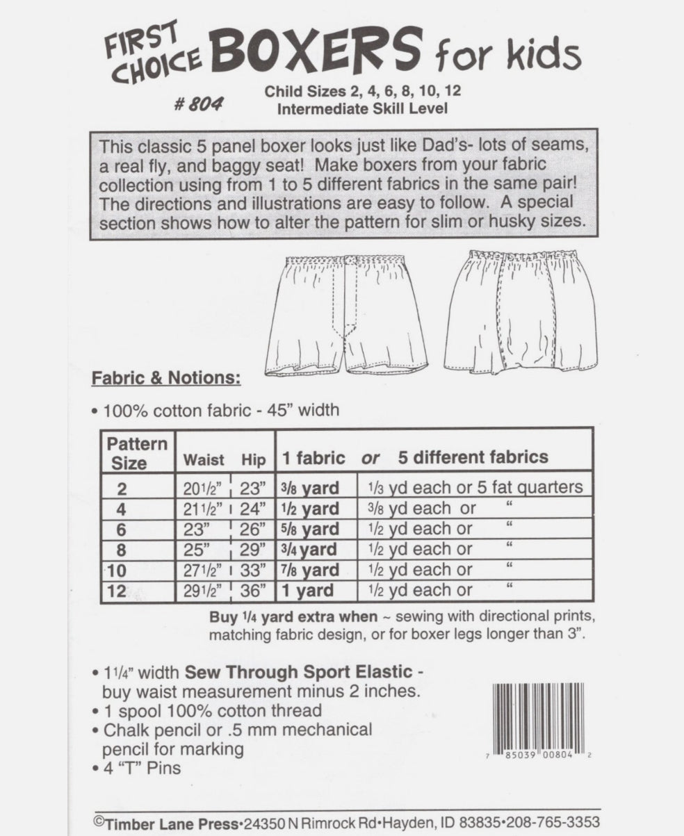 Classic five panel boxers with flat felled seams. Size range 2-12.