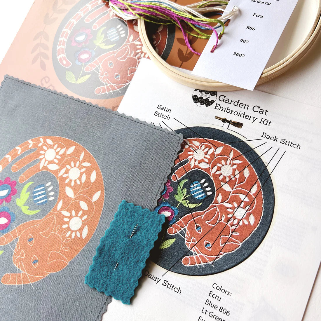 Your purr-fect stitch awaits with our Garden Cat Embroidery Kit! This adorable deep orange feline is nestled among the blooms and just waiting to brighten up your day (and your home).
