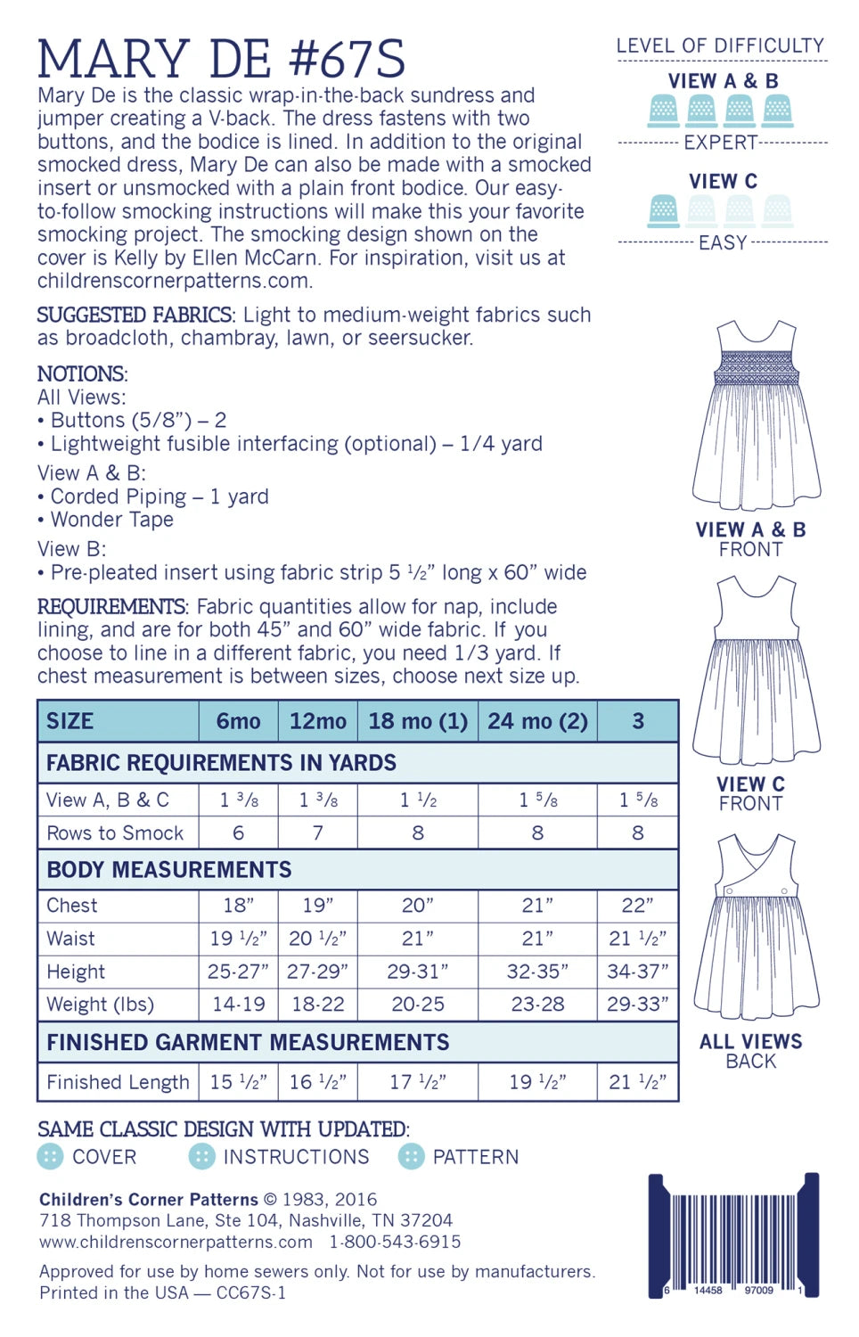 Mary De Kids Pattern :: 6 mo -3 yrs & 4 -8