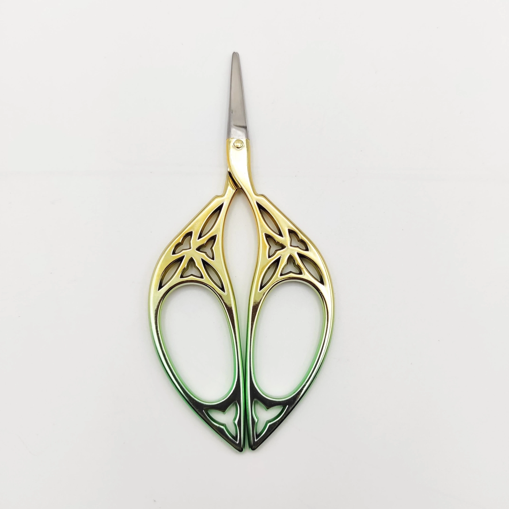 These leaf style scissors are gorgeous designs with sharp blades made of high quality steel and heavy duty. These are beautiful and practical for all your small crafting needs. They are great quality and easy to use! Size: 34.13" by 1.85"( 10.5*4.7cm) Material: Stainless Steel blade and Alloy handle