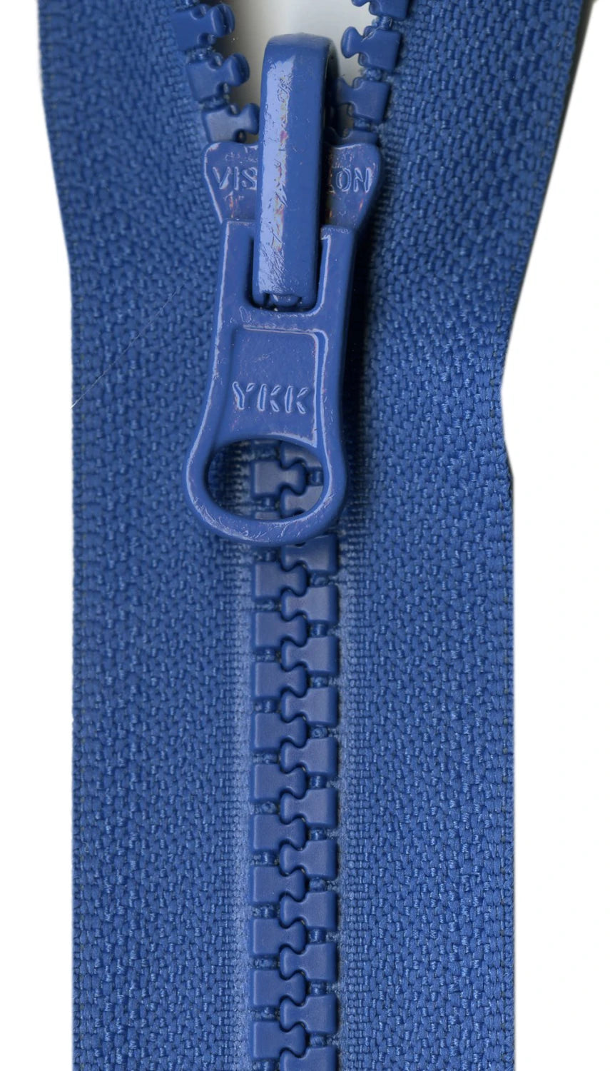 A sport weight zipper constructed of chunky, molded polyester teeth that are lightweight yet strong and durable. The teeth will not freeze or corrode making it an excellent choice for outdoor wear. Use in jackets, sweaters, vests and craft items. Great in polar fleece.