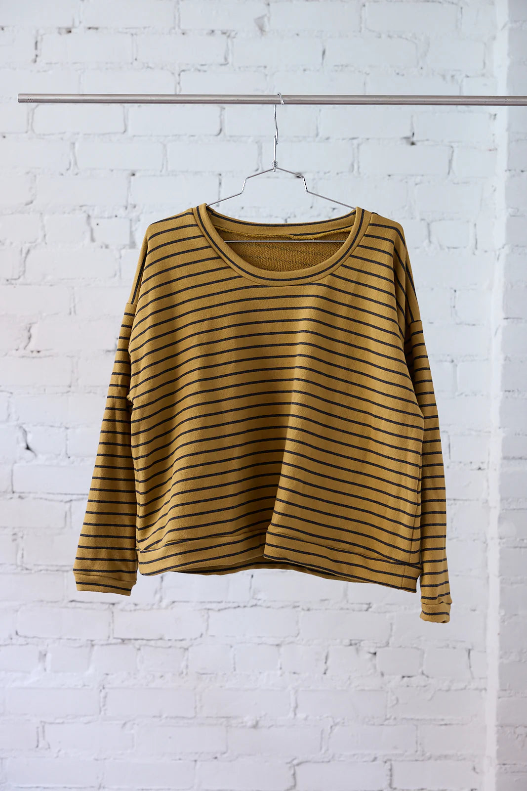 Sweater no. 1 is a versatile layering garment with drop shoulders and a boxy cut. The neck, cuffs and hem are all finished with fabric bands. An instruction booklet walks you through the steps, from tracing and cutting the pattern pieces, to making and sewing with knit fabric. The pattern is printed on bond paper, with nine nested sizes.